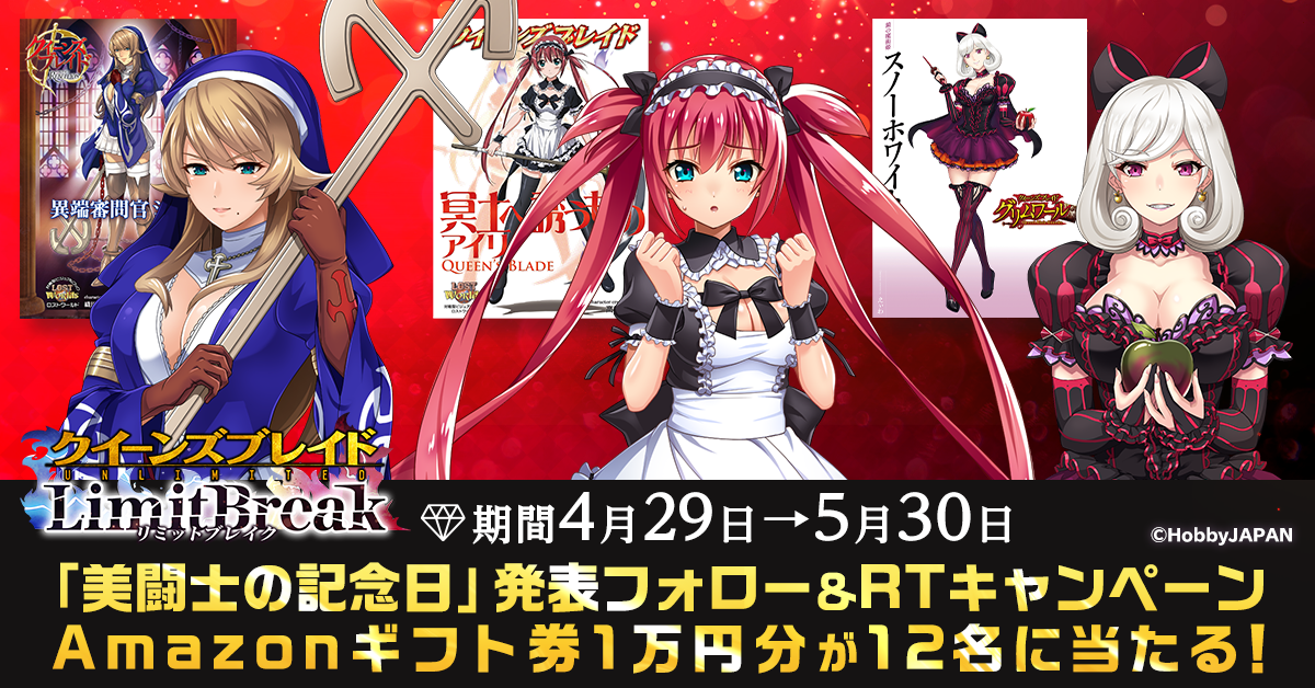 @queensbladeLB✨絶美闘士予想キャンペーン✨ #次の絶美闘士を当てよう のタグを付けて予想をTweetし豪華アイテムをゲット❗ 【応募方法】 1⃣ @queensbladeLB をフォロー 2⃣上記タグを付け美闘士名を記載しTweet 3⃣後日当選者にDMで通知 締切:5/13 23:59 #クイリミ #クイーンズブレイド #G123